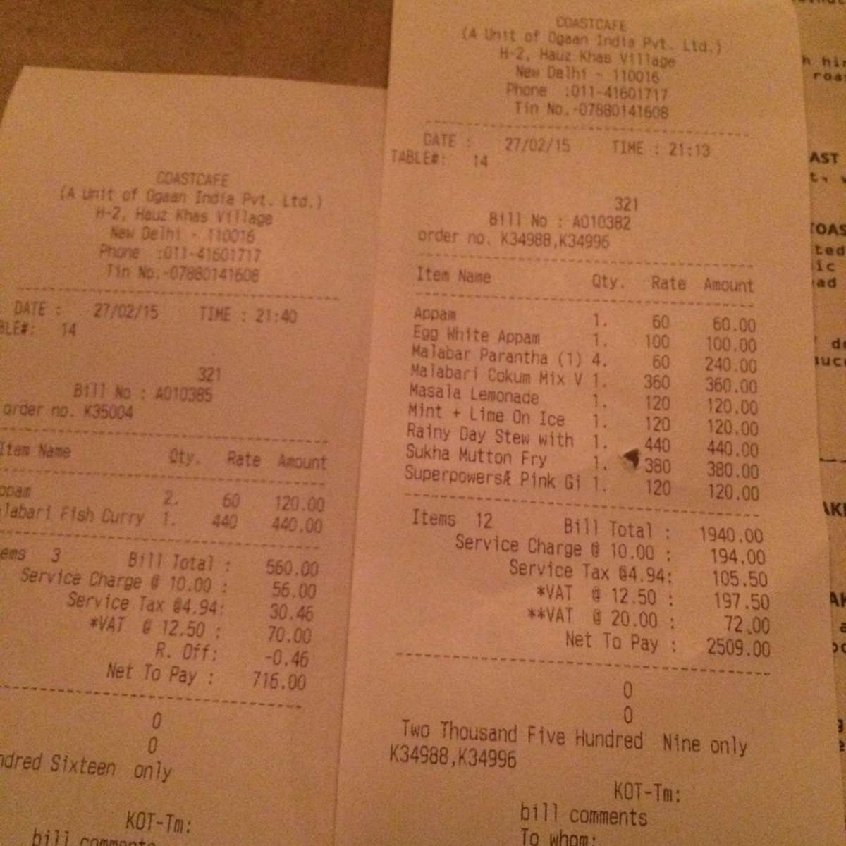 After months of people hyping up the food at coast cafe and declaring it to be best fucking thing since Gunpowder which was truly one of my favorite joints in Delhi. ( on a side note who in the right mind moves a successful outlet to GOA ?? Seriously !!! pass me what ever you guys were smoking ) I finally made it to coast cafe dinner. Let me clear the air first, personally very fond of south Indian coastal non vegetarian food ( I would rather have Ebola than be forced to eat South Indian vegetarian). Dreading the weekend village crowd we got there early without a reservation and were seated quickly but that’s pretty much all the prompt service we had all night. The Menus were presented shortly ( Read 5 mins later) but since it’s a so-called ” in place ” i give them a pass, and it was just about the start of the dinner service for them.